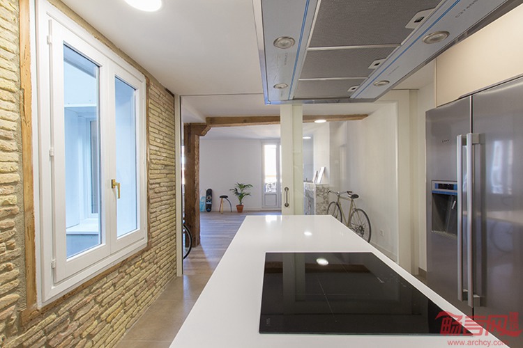 NUEVA是由Guillermo Agramonte工作室完成的住宅改造项目,坐落于西班牙北部的小城Pamplona市中心,这是一个年轻业主的首套住宅,旨在为其未来的家庭提供宽敞的空间,用于各种可能的活动。设计师出发点是解决问题,原先的空间有点零落,不够明亮,缺少内在逻辑。主要目标是营造光线和开放空间,让围绕露台的空间变得连贯,将起居室变成日常生活的焦点。