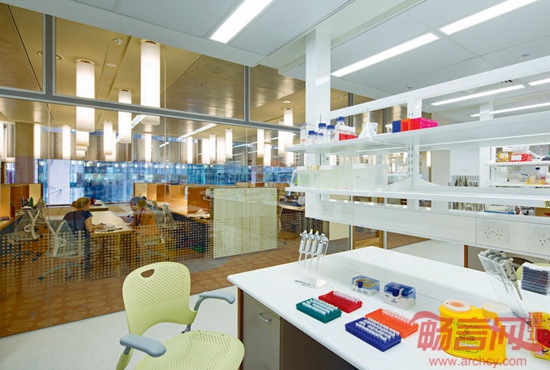 项目设计摒弃了通常没有特色的研究机构特点,营造出赋有人性化的场所,方便以自由的工作方式进行科学探索。设计师悉心营造,为原先工业化的背景添加了精巧的特点。朝外的房间具有宽阔的视野,提供城市尺度的民用空间,为员工从繁重的科研活动中休息片刻提供场所。