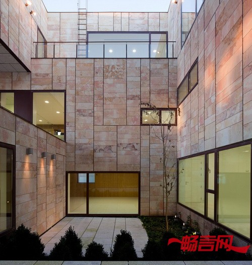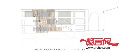 幕墙和庭院材料都是用的Zamora当地 的Arenisca石材,这与周围历史性建筑使用的材料保持一致。办公楼的幕墙是内外通风的,它不像其它建筑一样把里面的建筑系统遮盖住,反而让里面的钢结构能够看得见。低处几层是石板底座,这也是为了与周围的历史性建筑相互呼应。水平石板组成了建筑的另一层幕墙。