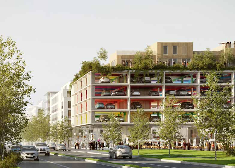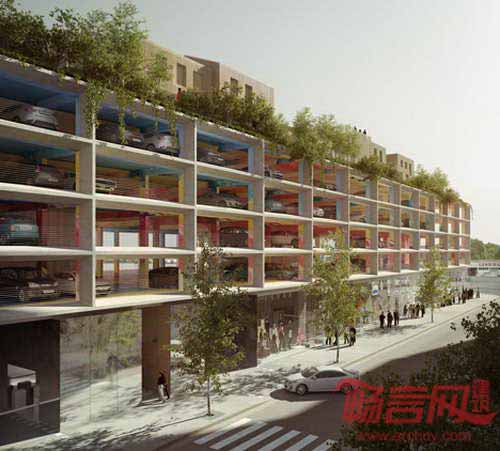 Brisac Gonzalez公司设计了位于法国波尔多的一座多层停车场项目。项目停车空间位于底层商铺和顶层住宅之间。项目包含450个停车位,此外涵盖1400平米零售空间和19套顶层花园公寓,增添了建筑在白天以外时段的功能性。设计师表示,“许多停车场在办公时间结束后处于闲置状态,造成了活动死角。我们引入住宅和零售空间就是为了解决这一问题。”设计师设计了一系列一室到三室公寓,提升了空间利用率。公寓周围的公园提供了公共户外空间,其围绕中央庭院设置的方式参考了波尔多传统住宅设计。公寓将采用轻质交错层压木材,可减轻对于下层车库的荷载。