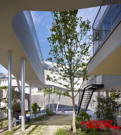 伸长的外墙板让这里未来可以延伸,也让这里看起来能够柔和一点。