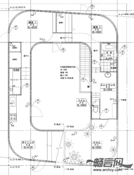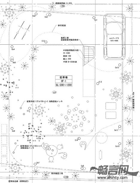 客户要求这个住宅要能仰视到附近住宅的屋顶,并要比它低一层。而且,因为住宅处在住宅区的边缘,要保证它的安全。同时还有流出一些空间,因为客户以后像在这里开一个小商店。