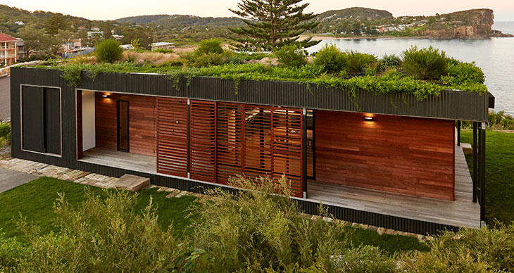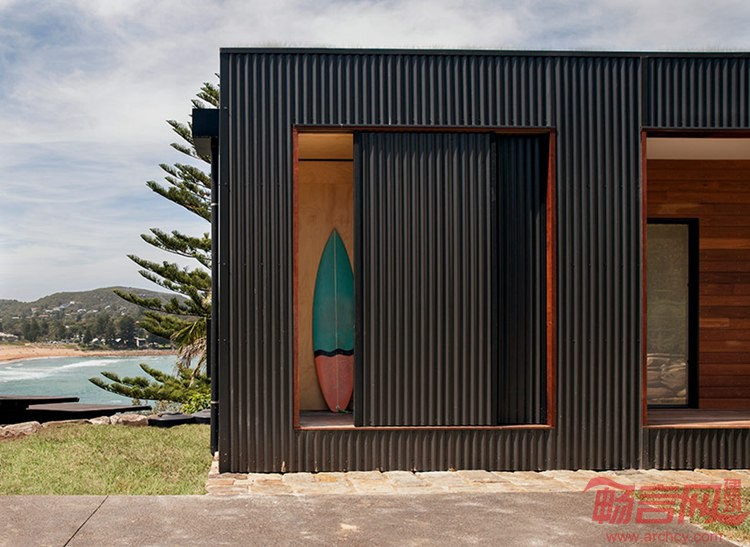 澳洲Archiblox工作室完成了悉尼郊外海滩的一处悬崖上的住宅设计。这是一座106平米预制住宅,设计公司擅长预制模块化施工,利用这一专长,设计出对环境影响极小、施工对生态系统影响最小化的住宅。整个施工周期仅有六周,三角形空间为东西朝向,顺应海风方向,有利于自然通风。最长的外立面面朝北部海滩,因而设有较大的窗户,让户主享有充足光照。