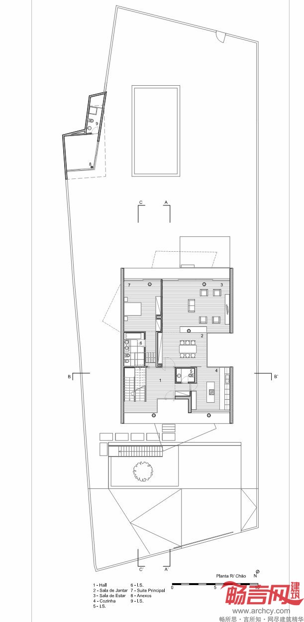 地下室主要分布着洗衣房、储物间和车库等。由于房子两边的马路高度不一样,从南面看,房子只是一个2层结构,而北面则多出了一层地下室,成为3层结构。