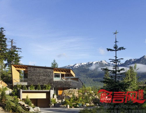 这座房子建在Whistler居住区,该居住区位于加拿大大不列颠哥伦比亚省(B.C.)的一片半山坡上。