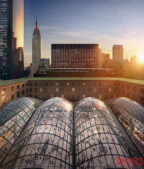 SOM建筑事务所对外公布了纽约宾夕法尼亚车站Moynihan大厅图片。该项目会使Amtrak一座旧邮政办公楼变成宏伟的候车厅。大厅面积4.5万平米,设有弧形玻璃屋面,原建筑是建于1903年Farley邮政建筑,设计者是McKiM Mead & White。该项目已经获得纽约州州长Cuomo审核通过,属于宾州车站大型改造项目的一部分。