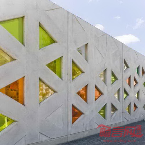 街道一侧的低层建筑外观具有向内属性。混凝土墙面带有小块彩色玻璃窗以及与建筑高度持平的竹子栅栏,在幼儿园和外界之间竖立了一道屏障。