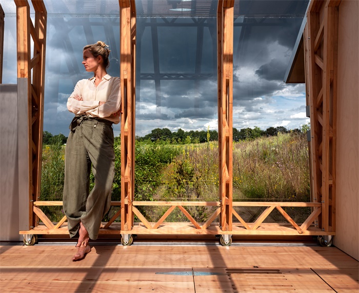 英国建筑师Caspar Schols为父母设计了一个带活动墙的花园住宅。这座平房供其父母居住和工作使用。Schols借鉴了他在2016年学习建筑期间完成的花园屋展馆,创建了两个商业化小屋。与花园式住宅一样,小木屋有内部横梁和玻璃结构,与外部木质墙壁和金属屋顶分开。内外部件都设置在交通路径上,通过可移动元素以创建不同的布局。