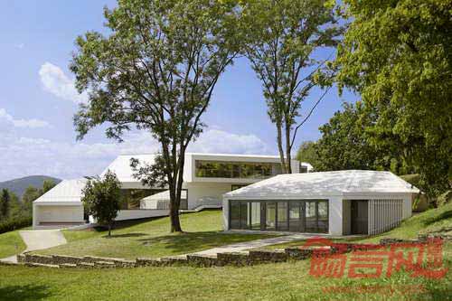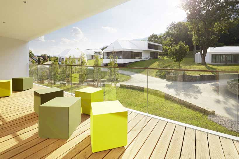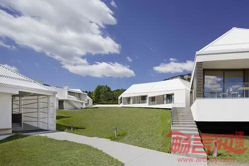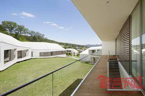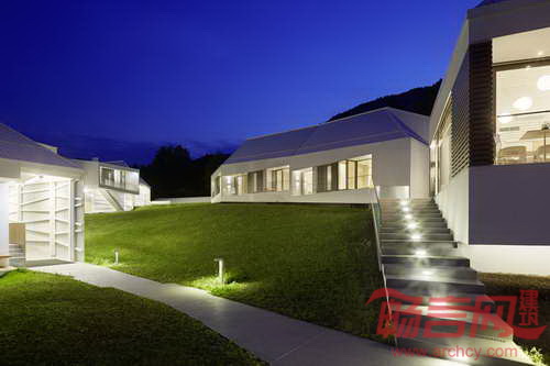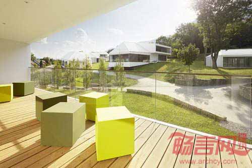 Stollhof会议培训中心项目坐落于奥地利Stollhof的山地环境中,由CP建筑事务所设计,设计意图是使建筑成为连接人们和景观的纽带。项目采用了梯形建筑和外形,造就出复杂的建筑结构,使各部分呈现出不同的夹角,符合当地严苛的地形。参观人员沿着建筑拱廊环绕,从始至终会同当地美丽的自然景观亲密接触。建筑上方采用了传统坡屋面设计,通过通向户外绿色景观的屋顶窗设计,建筑体现了当代正式设计语言。