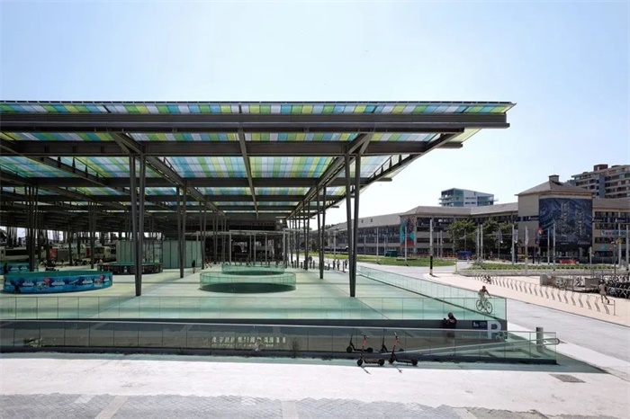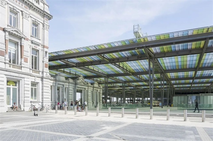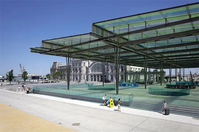 既有建筑的外观与车站保持了一致,其机构属性使其呈现出重要的存在感:在宏伟的、面向港口和市政厅的既有建筑与开阔的大屋顶之间建立了两个实体的对话。车站广场面向城市,它是港口上的一个大型空间,整合了公交站、有轨电车和自行车停车场,为用户提供了真正的多式联运平台。
