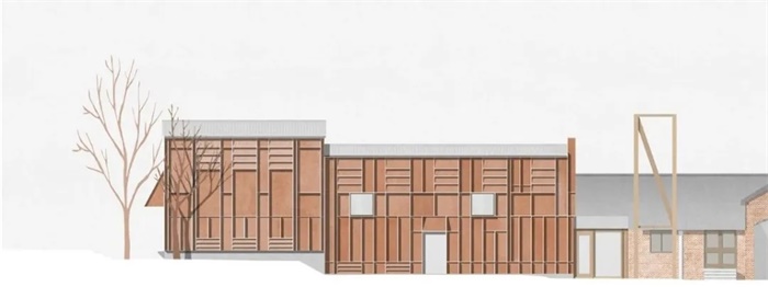 剧院以其主要捐助者戴维·布朗洛勋爵的名字命名,将极大地促进学校130名学生的个人发展。剧院取代了70年代在校园西侧建造的一座模块化小屋。新建筑物的位置与周围环境略成角度,以融入场地潜在的城市气息,并在现有建筑群中创造了一个市民广场。剧院采用被动通风,和谐地坐落在校园树木繁茂的环境中。建造过程采用了CLT结构体系和Viroc木纤维镶板,CLT框架结构成本效益高,可以减少现场施工时间,并且与砌体结构相比减少了40吨二氧化碳排放。
