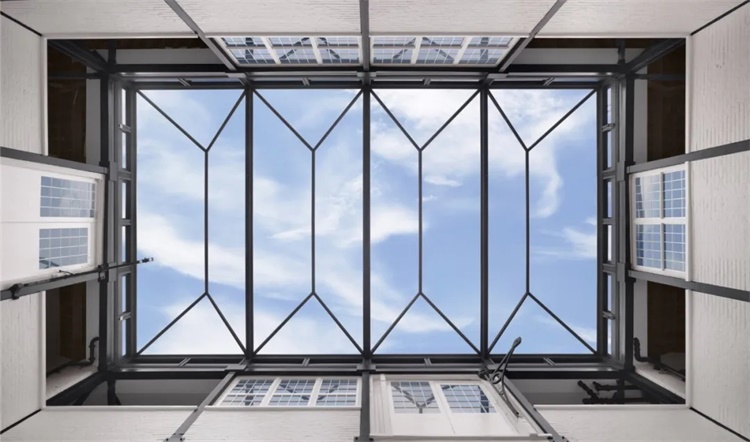 Carriage Hall,原本废弃的马车大厅被改建为一个百货商店,图为中庭标志性的天窗,为了最大化进入自然光,采用的单位8米长的双层玻璃是欧洲可制造的最大尺寸