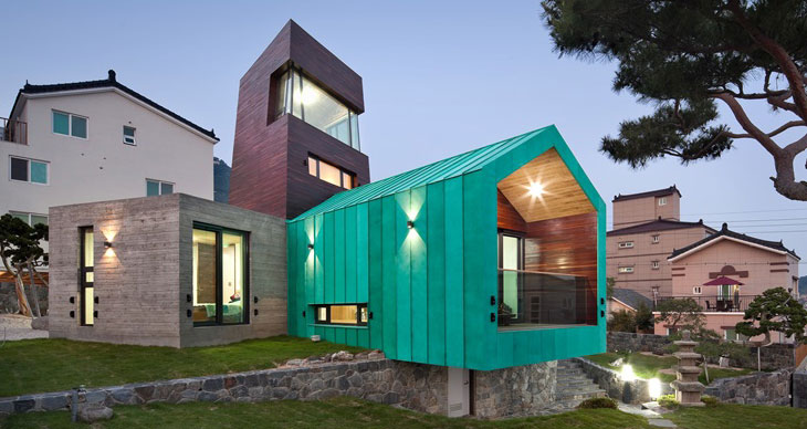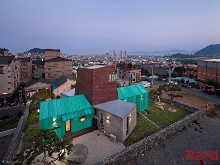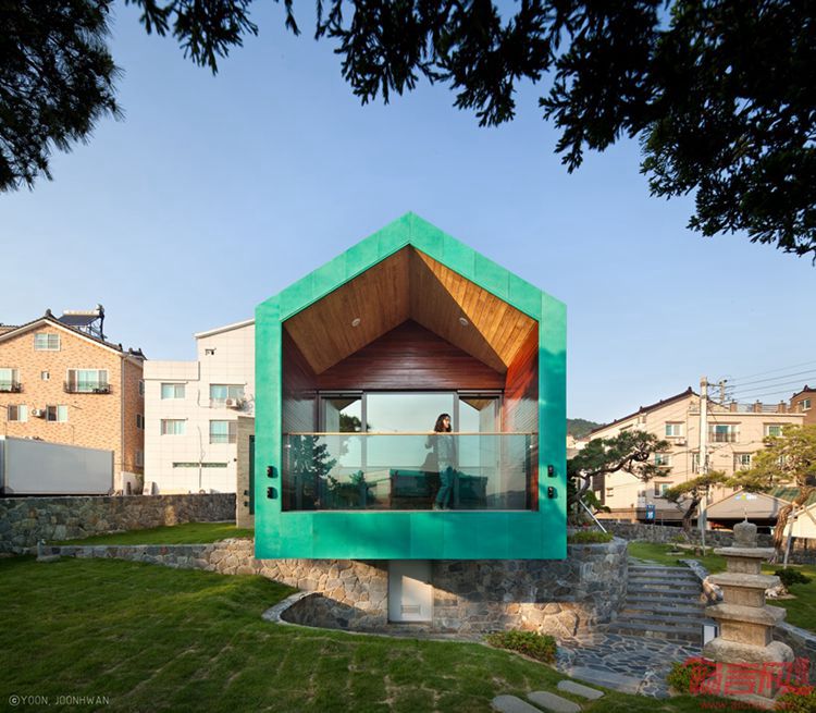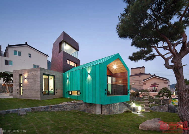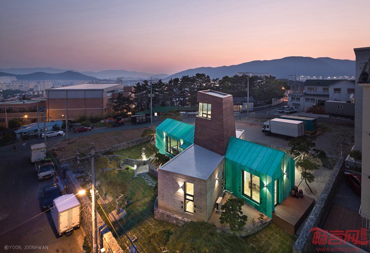 这个位于韩国Gimhaehyanggyo孔子学校后方的住宅项目由On Architecture工作室设计。建筑视野开阔,向金海市敞开。甲方最初希望创造多家庭住宅,后期由于土地限制,不得不更改了计划。尽管如此,设计师还是通过城市景观的渗透,吸引了甲方的关注。基于场地条件,设计师做出一座以观测塔外形呈现的家庭住宅。