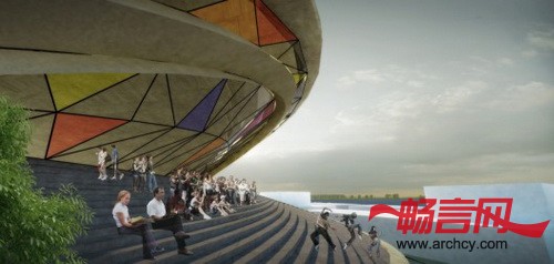 与老表演艺术剧院的建筑设计不同,新建筑没有将机动车道设计为主车道,反而将行人步行这一元素融入到设计里,用以表达“文化 --- 每个人都触手可及”这一理念。