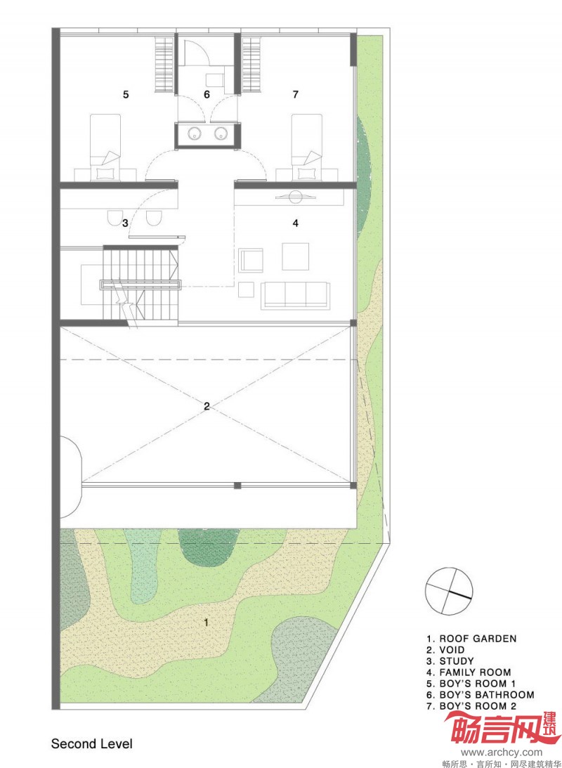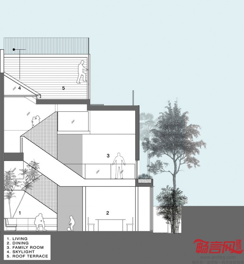 “业主希望我们将房子内部视野打开,以便他们在各个不同的区域都可以监护到2个孩子,”设计师介绍说:“同时我们也希望扩大房子的花园空间,尽管这座半独立式的房子占地面积比较狭小,而且绝大多数的地面都被建筑占据了。”