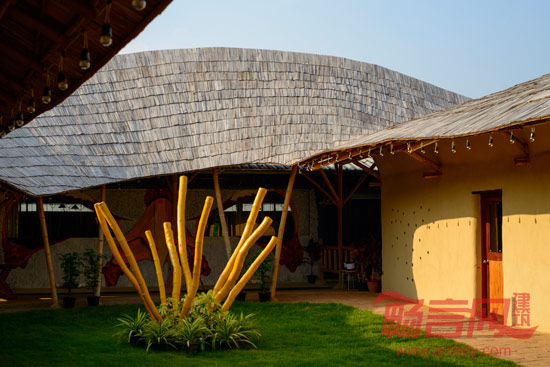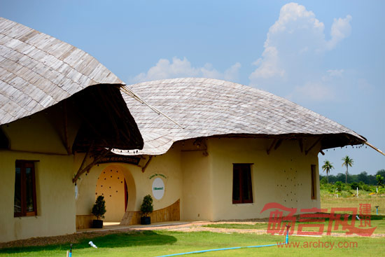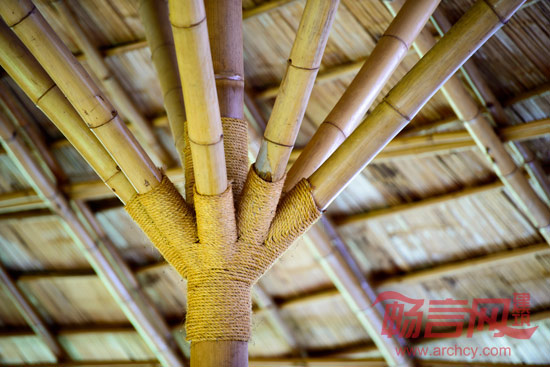 建筑材料全部为天然材料,仅限于竹子和泥土。设计难度在于,要使用这两种天然材料建造一座功能上满足使用要求、外观上满足21世纪审美的建筑。