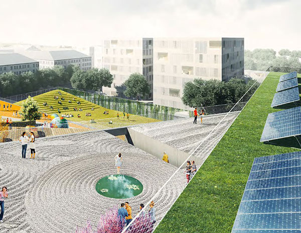 BIG建筑事务所设计了位于美国弗吉尼亚Arlington的Wilson学校。该项目包括对一座五层建筑的改造,使其同场地环境建立联系。建筑旨在成为一个垂直社区,学校在平面上铺展并叠加,以增加中央空间,同时在各个楼层营造阶梯式的屋顶露台。设计方案是让每个楼层都围绕一个焦点旋转,使教室通向操场,行程瀑布式格局。