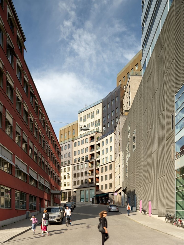 如同可塑的迷你曼哈顿降落在城市街区,建立了充满活力的街景与住宅,吸引赋有表现力的城市活动。项目包含了城市的基本价值,提供多样性、广泛的功能。独特的建筑轮廓,不同的深度、外形和纹理,远观、街道近景皆宜。建筑结构以不同比例诠释了北欧和环境建筑的不同高度。