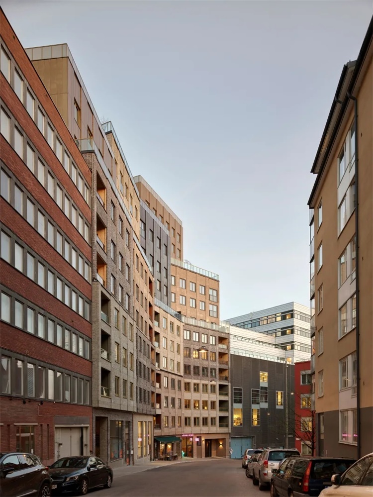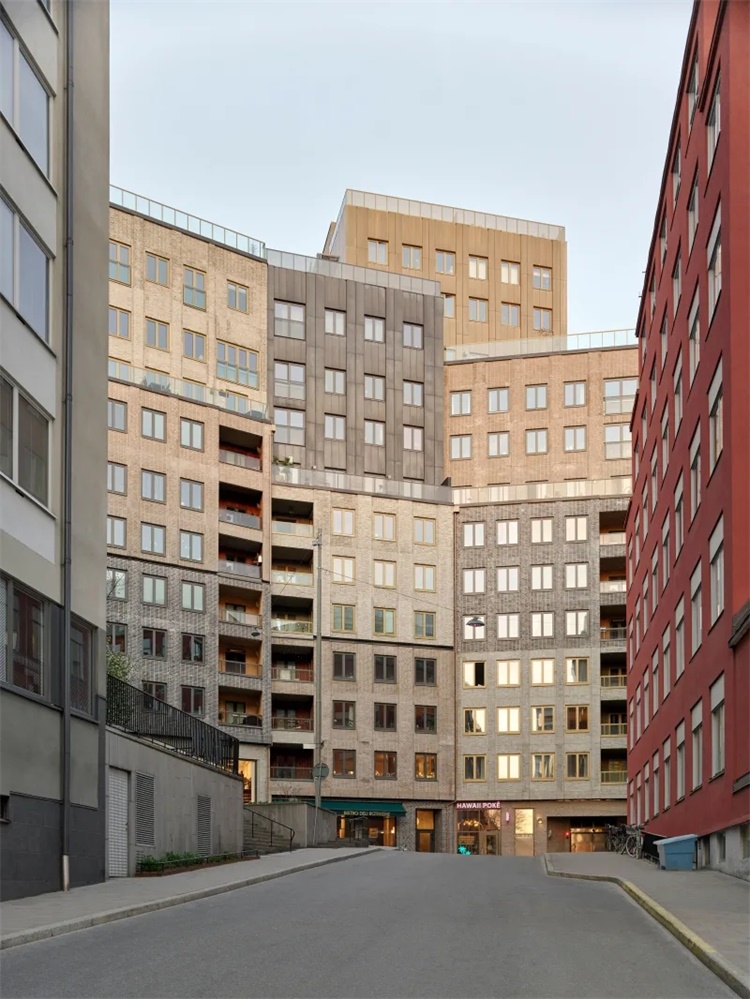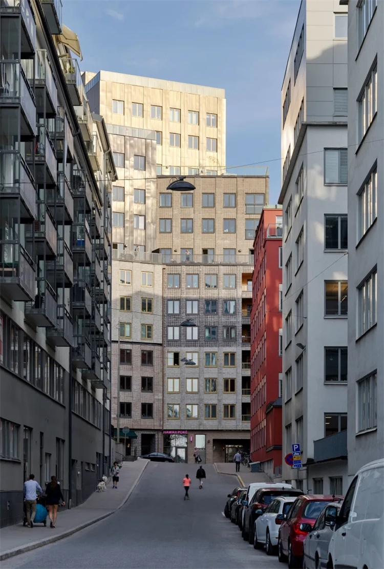 项目位于斯德哥尔摩市中心Kungsholmen西区,Etaget住宅项目获得2018年瑞典设计奖建筑竣工类别一等奖。Etaget具有强烈的城市特色,由Tobin和Ebab公司联合开发。包含办公楼和轻工业单元,附带商业和新型住宅,所在区域已发展成为多样化复杂社区。项目旨在将现有的环境与突出、进一步发展城市结构的建筑结合起来。建筑设计适应地区文脉,同时赋予其全新的品质。