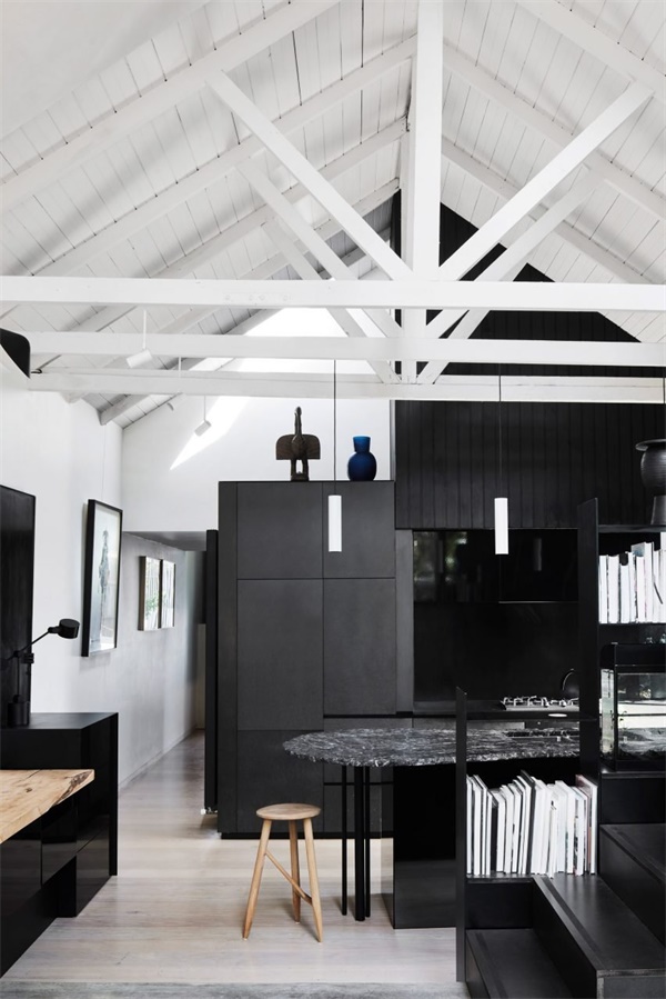 黑色木质装饰条穿过曾经的工人木屋,墨尔本的这所房子中,创造了开放的起居空间,由来自当地的Splinter Society工作室设计。