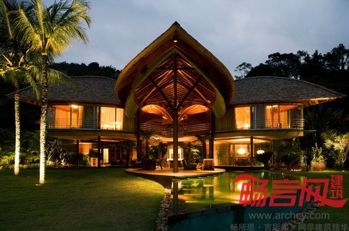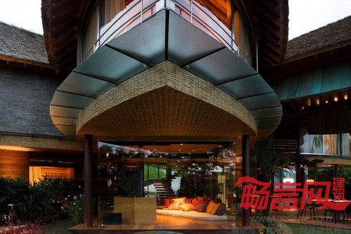 从巴西的里约热内卢驾车出发,行驶大约1小时,就到达了该市的Angra dos Reis地区。那里有一座依山傍水的别墅,别墅的树叶形状的屋顶是它最引人注目的特点。这样的设计灵感来源于巴西当地的印第安建筑风格——这种风格的建筑能够很好地适应南美洲的湿热气候。
