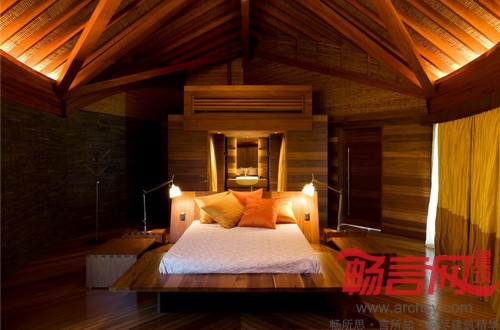 别墅内部空间比较宽敞,屋顶被挑得很高,不同区域的屋顶高度在3米到9米不等。这样,来自东南方的海风就可以顺畅地吹过整栋建筑的内部空间,形成了天然的通风系统,同时还可以给房子内外空间带来凉爽。我们认为这样的设计就是生态环保的典范,而且并不需要依赖高科技,这也是该别墅设计理念的重点。