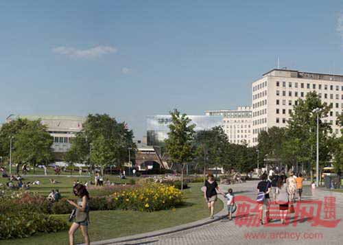 Marks Barfield建筑事务所设计了伦敦眼摩天轮附近的架空玻璃场馆。建筑位于十字交叉铁柱上方,外立面采用全玻璃材料。 Marks Barfield建筑事务所在赢得了一项设计竞赛后,取得了该项目设计资格。该项目属于Shell中心场地重新规划的一部分。若顺利取得规划许可,这座四层建筑将容纳营销场所以及教育和访客设施。开放商代表Pagano表示,“我们选中伦敦本地的Marks Barfield建筑事务所设计此次项目。他们设计的伦敦眼已经对伦敦南岸产生了积极影响,在国际范围内获得了成功。”