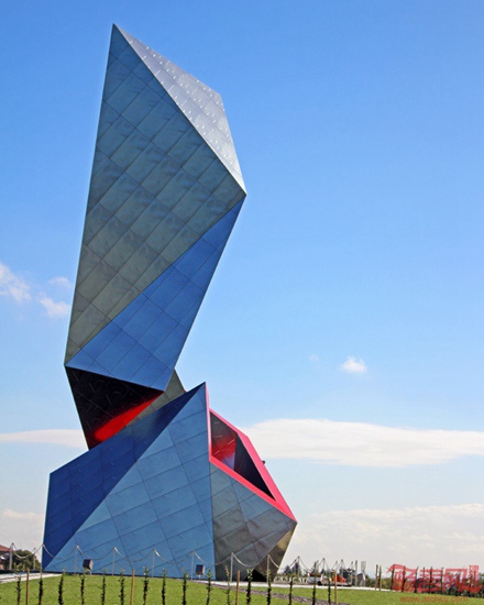 丹尼尔里伯斯金设计了位于意大利Casalgrande的雕塑建筑。项目具有多块面结构,以螺旋姿态耸入蓝天。项目名为王冠,业主是Casalgrande Padana陶瓷公司,该企业曾同多个著名建筑师合作设计装置,其中包括隈研吾。项目临近业主工厂,处在道路交口位置,连接了Casalgrande和Sassuolo。这座建筑也成为这一陶瓷生产地区的新地标。