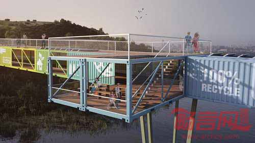 集装箱模块化特点方便了替换和修理工作,同时便于修改局部设计,并提供了观景的自然比例。
