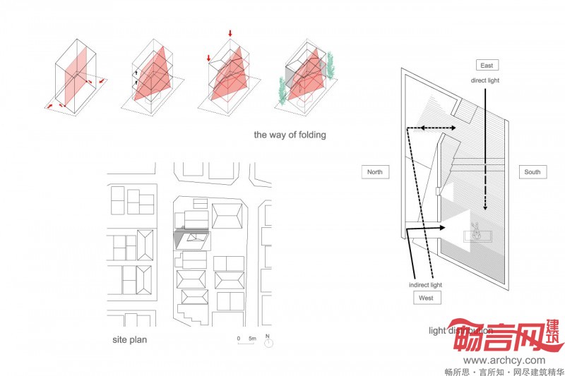 “我们不希望一座城市中的每栋建筑都过多地局限于其所在的地形,我们希望每栋房子在外型上都能独具特色,而且与人和自然都能建立联系,”设计师说:“于是我们设计了这样一座折叠房子,这种设计模式也适合于建造大型建筑,如集体住宅、办公室、多功能综合楼等等。”