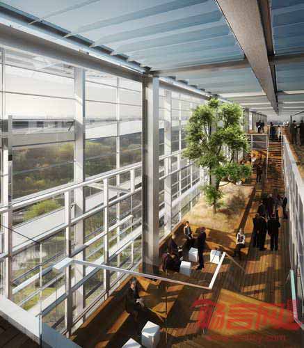 由法国建筑师Jean Nouvel设计的欧洲专利局(EPO)办公大厦将破土动工。项目位于荷兰海牙,占地8万平米,为业主1750名员工提供了灵活舒适的办公环境。建筑高达100米,成为EPO倡导的欧洲创新理念的鲜明象征。这座几乎全透明的建筑如同漂浮在场地上,玻璃和钢外立面透出沉静安宁的质感,自然地融入了城市天际线。建筑周边是水面环境,不锈钢材料的入口处两侧设立了45个欧洲国家国旗。通过低于水平面的入口处,游客继而进入6米高、充满自然光照的大厅。接待处设置了一系列潜望镜,反射周边景致。办公区采用开放式设计,鼓励员工间的交流沟通、相互合作。预计该项目将于2017年4月竣工,景观设计将于2019年年初完成。