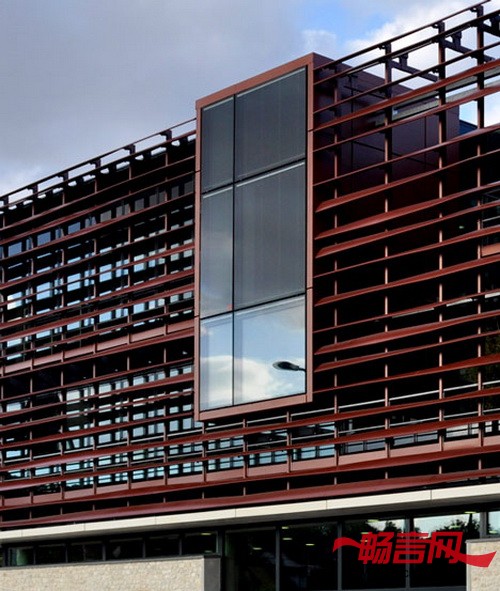外面嵌有铜制百叶板的楼层上安装了十分具有当地特色的窗户,窗户是里面会议室的一端。