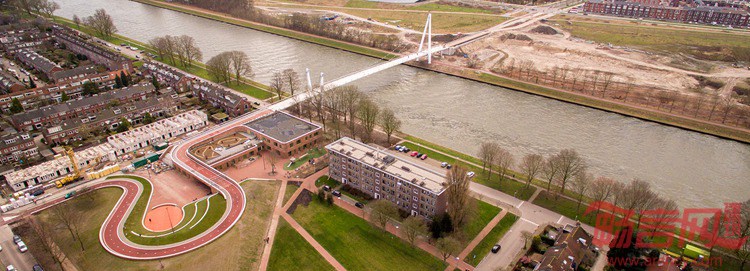 NEXT事务所设计了位于荷兰乌得勒支的110米步行桥。这一多用途的桥梁跨越了阿姆斯特丹莱茵运河,将于下个月投入使用。独特的结构结合了行人桥和自行人桥的功能,并同学校和公园空间相结合,构成连贯统一的设计。桥梁距水面9米悬挑,最高点距水面35米。