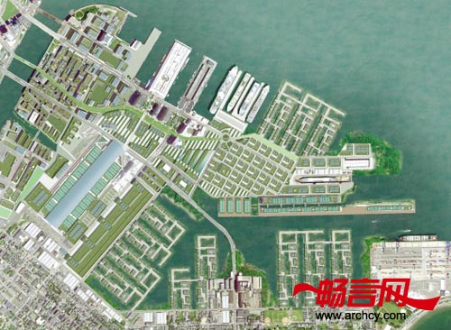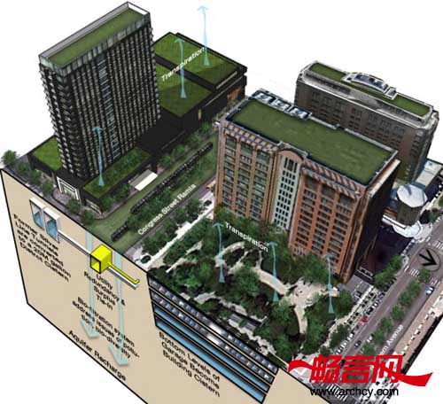 我们的波士顿创新区设计方案包括开发一条新运河,它会将100英亩的土地归还给大海;在全区建造屋顶花园和绿色墙壁,以重新建立起我们久违了的良好生态环境。我们的方案最终将提供超过1,500平方英尺的绿地面积和绿色屋顶。