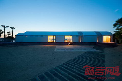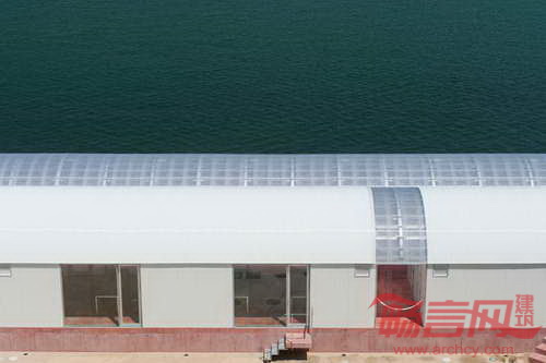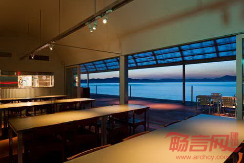 海上餐厅位于日本丰岛,由CASE REAL建筑事务所设计,为2013年濑户内国际艺术节的当地居民和游客提供了就餐场所。食品是岛上的一大问题,这里有大片的稻田遭到了荒废。设计主旨是创造包容的美食空间,为尽量广的人群提供可口的食物,复活当地的经济。餐厅建筑由两个延长的弧形结构组成,一个大露台为客人提供欣赏优美海景的空间。露台空间是设计的核心,成为连接主厨房、公共厨房和座位区的枢纽。半透明聚碳酸酯板材围护其空间,提供了充足的自然采光,与室内环境形成了截然不同的氛围。