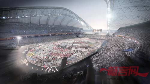 建筑的简单的碗状结构可以满足不同规模的要求,在冬奥会开幕式、闭幕式以及颁奖仪式上,体育场的座椅可从2.5万个增加到4.5万个,并且符合国际足联的比赛要求。拱形体育场的侧翼是平台,中间是连续的碗状结构。在主要运动场地的外围,碗状结构外墙从两个高处观望台到主要拱门内由高到低、由宽松到紧凑排列。