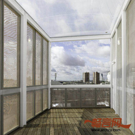 “空中之屋”是由大卫.科恩建筑设计所在建筑基地公司伦敦分公司的办公楼顶建筑的一套房屋。