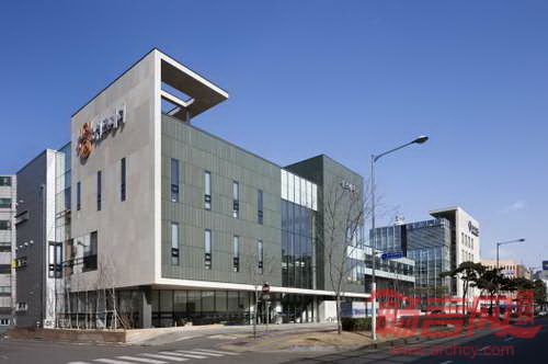 D-Lim Architects建筑事务所设计的Shesmedi位于韩国京畿道,两栋相对建筑之间是停车场,间距达45米。此前,其中一栋建筑是设有20个床位的产科医院,另一栋是仓储空间。建筑师修复了两栋建筑,添加了40米的过道桥。仓储建筑用于一栋低成本购物中心,外立面覆盖了太阳能板。