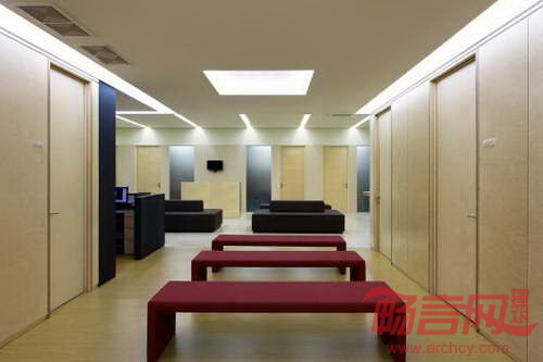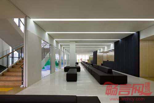 连接两栋建筑的过道高9米,下方是停车场,成为使两栋建筑合二为一的主要通道。住院楼的三层是新生儿单元,与住院和LDR产房来往便利。准妈妈可以在过道桥梁上散布,祈祷生产顺利。其他人员可以在过道上休息片刻,欣赏户外景致。