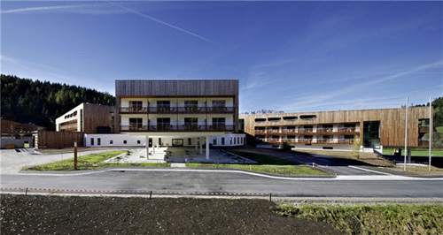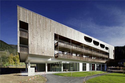 这是由ArchitekturConsult设计的奥地利Bergresort Werfenweng酒店,酒店位于小镇的中心区域,这里是多个公共区域的聚集地:小镇公墓、当地政府、消防站、音乐会议中心、公立学校和学龄前幼儿园。酒店的西侧有农家乐以及去往滑雪胜地的公交站。蜿蜒曲折的公路沿着小镇的东北方向绵延而去。酒店的入口通道处有一个岩石花园,而酒店的住宿区就位于这个23米高的花园之上。