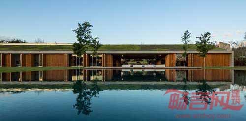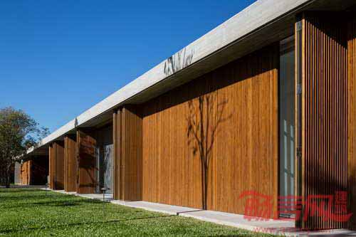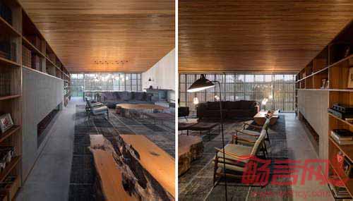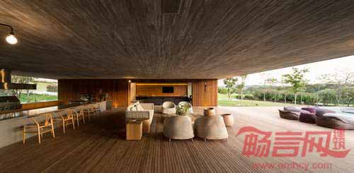 巴西MK27工作室完成了最新项目——位于圣保罗的MM别墅设计。东西轴线上是一个加强混凝土结构建筑,绿色屋顶使房屋融入到翠绿山峰景致中。从车库到入口再到另一侧的主套房,所有空间呈“一”字型排开。建筑外围使用一整排长方形窄木条覆盖,配合大扇玻璃墙壁,使直接采光变得柔和,同时也使室内空间变得开敞通透。