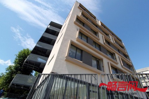 建筑师把公寓楼设计成一个明亮的、现代的、又有点传统住宅特色的建筑。它的基本样式是:清晰的空间分隔、平屋顶、前面是整面的幕墙,幕墙上有壁橱式的窗户,南北两面幕墙上有内嵌式木质方形空间。这些方形空间代表的是独户小型住宅,它们是对公寓楼住户的旧时“小型住宅”的再现和全新诠释,那时候,人们的房子都在同一个屋檐下。无论是室内还是室外,建筑师都主要使用天然材料来装饰,这样让公寓看起来更有家的感觉。