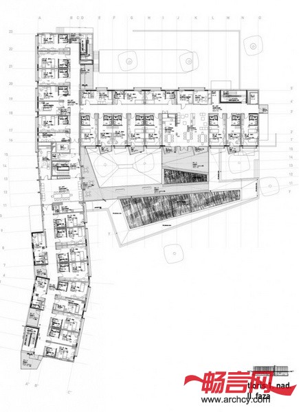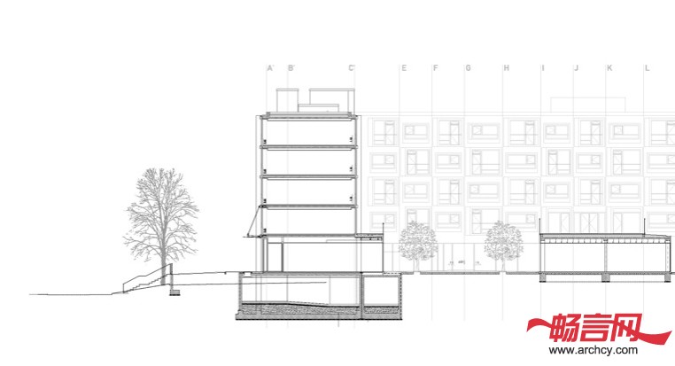根据楼层的不同,设计师将公寓楼分成三部分: