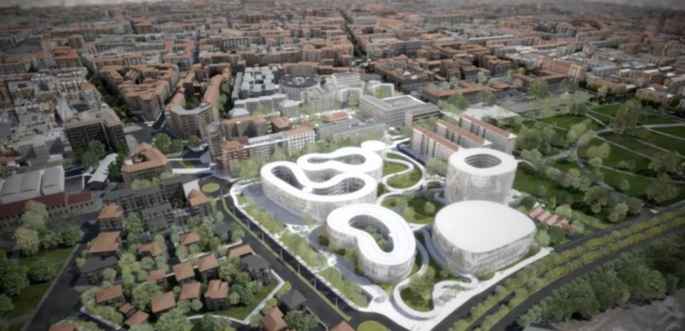 SANAA没有填满35万平方米的场地,而是将项目分解成一组有机半透明的白色形式,围绕着一个由蜿蜒的走廊穿过的公园。受到历史悠久的米兰宫殿启发,每座建筑都有自己的庭院,并整合了景观路线、门廊和阳台。