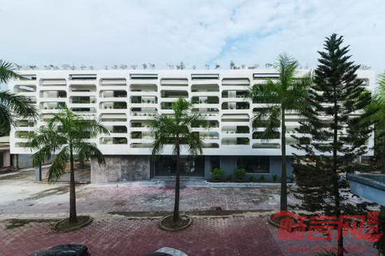 SRDP-IWMC办公楼位于越南Ha Tinh市,由H&P建筑事务所设计。项目面积1307平米,工程造价50万美元。项目所在道路设有多个政府办公楼,建筑成为国际农业发展基金办公总部。由于预算限制,项目使用了原有设施的办公家具。项目考虑因素包括越南当地气候变化情况以及快速城镇化对农村地区的影响。项目理念综合了定耕以及定居,旨在达成三个目标:标志性外观、低成本和快速施工。