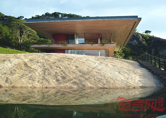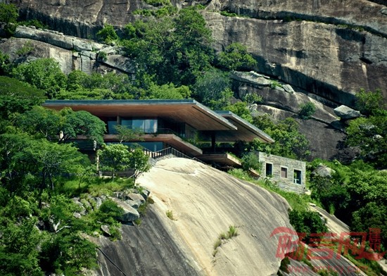 在东非的一处岩石山坡上,有一座像三明治一样的房子,这是为一名音乐家打造的住宅兼工作室。