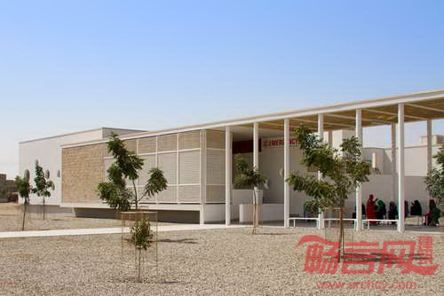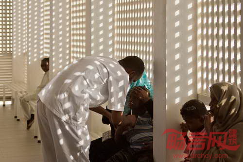 项目除了采用较小门窗设计外,通过包括采取诸如压低砖瓦储藏室在内的传统冷却方法,起到大规模遮阳、增大散热表面积的效果。医院总体外形遵从烟囱效应,并采用防风罩增强空气流动,减少灰尘进入。