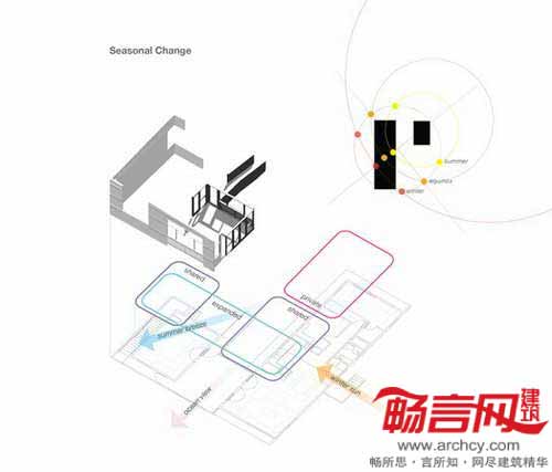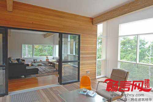 美国建筑师Chris Kilbridge在马萨诸塞州鳕鱼角建立了一处全年皆宜的房屋。建筑设计满足了房主一家的多种需求。屋内空间不仅具有灵活转换功能,同时还能符合随时间推移产生的一家人对空间的要求。房屋的每部分都能独立于其他部分存在,在主人孩子长大后,可以分成两个独立的房屋;当然也能根据房主的需求,建立一个工作室、办公室或游戏室。