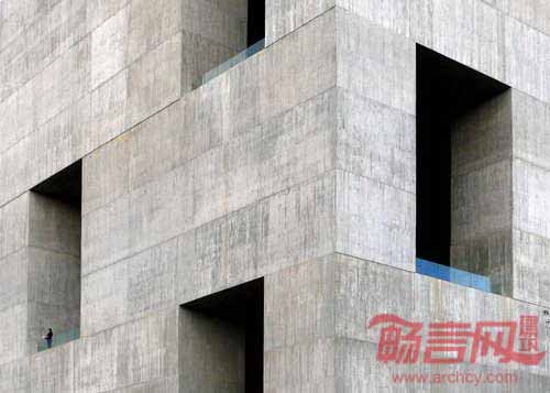 出于环保考虑,设计方案最终选择了混凝土材料作为建筑的外立面。