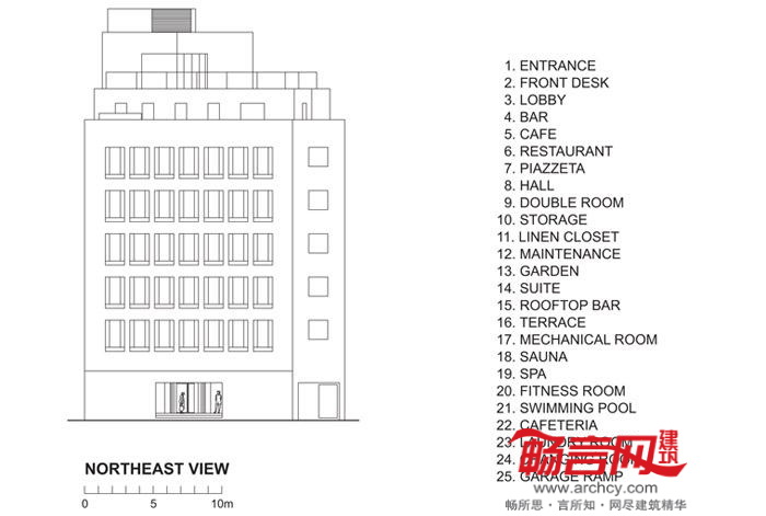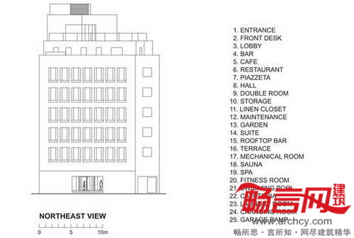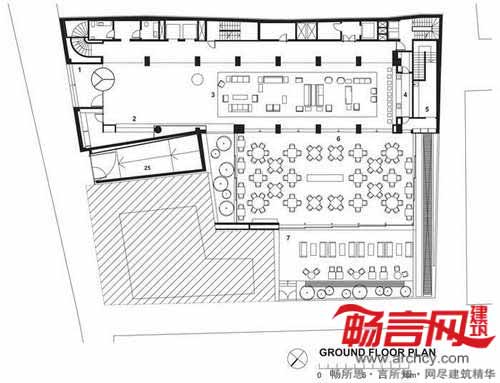 九广场酒店坐落在贝尔格莱德的老城区,在学生广场的对面。酒店采用了极其现代的建筑语言,同时又不对附近建筑产生冲突和影响。相反,酒店遵循了周边建筑的规模、外墙的韵律、温和的用色原则。酒店一层拥有充足的公共区域,包括大厅、餐厅和小广场在内的不同部分排布合理、有序。